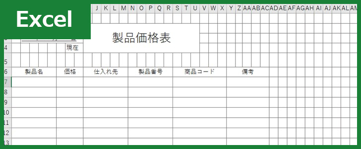 製品価格表 Excel 無料テンプレート はシンプルでビジネスでも使いやすいデザイン